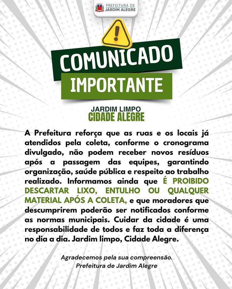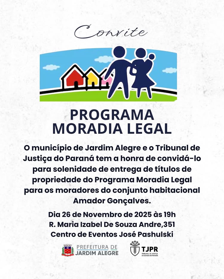 A Prefeitura de Jardim Alegre realizou a implantação de iluminação pública em 100% de sua área pertencente. Esta medida tem por objetividade fortalecer a estrutura local, proporcionar um ambiente mais seguro, impulsionar o desenvolvimento econômico, impulsionar o crescimento sustentável e consequentemente atrair novas empresas a se instalarem no município, viabilizando a geração de mais empregos para população.