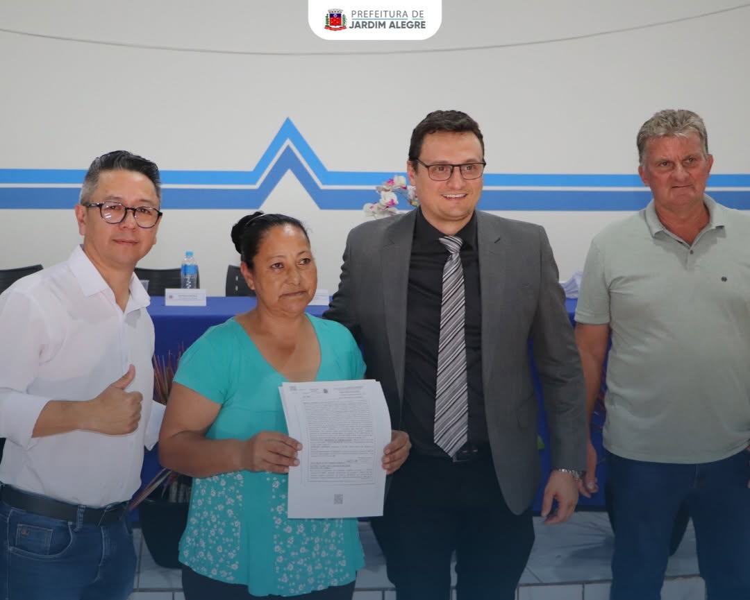 A Prefeitura de Jardim Alegre acompanhou, na noite desta quarta-feira (26), a entrega de 99 títulos de propriedade a moradores do Conjunto Amador Gonçalves, por meio do Programa Moradia Legal, iniciativa do Tribunal de Justiça do Paraná