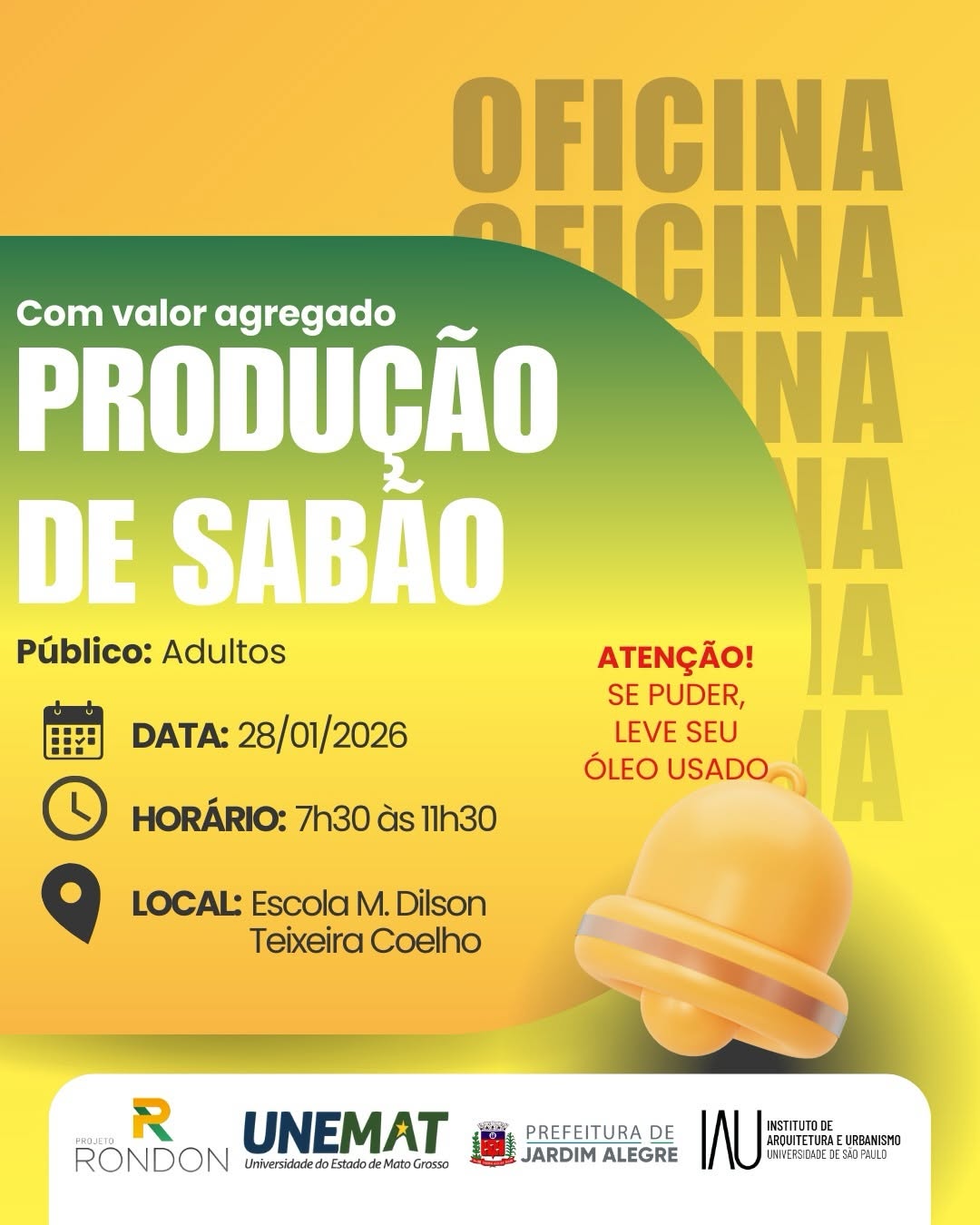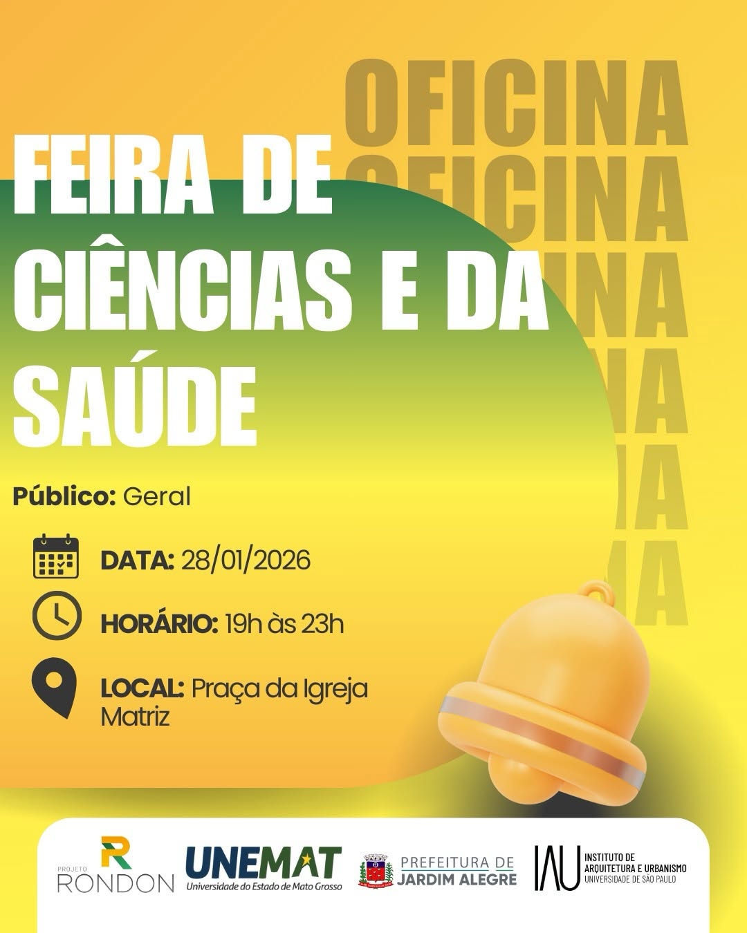 28 de janeiro de 2026 (quarta-feira) será um dia especial de aprendizado, troca de experiências e participação comunitária com a realização das oficinas do Projeto Rondon, além da Feira Jardim dos Sabores, integrando conhecimento, cultura e valorização da produção local.