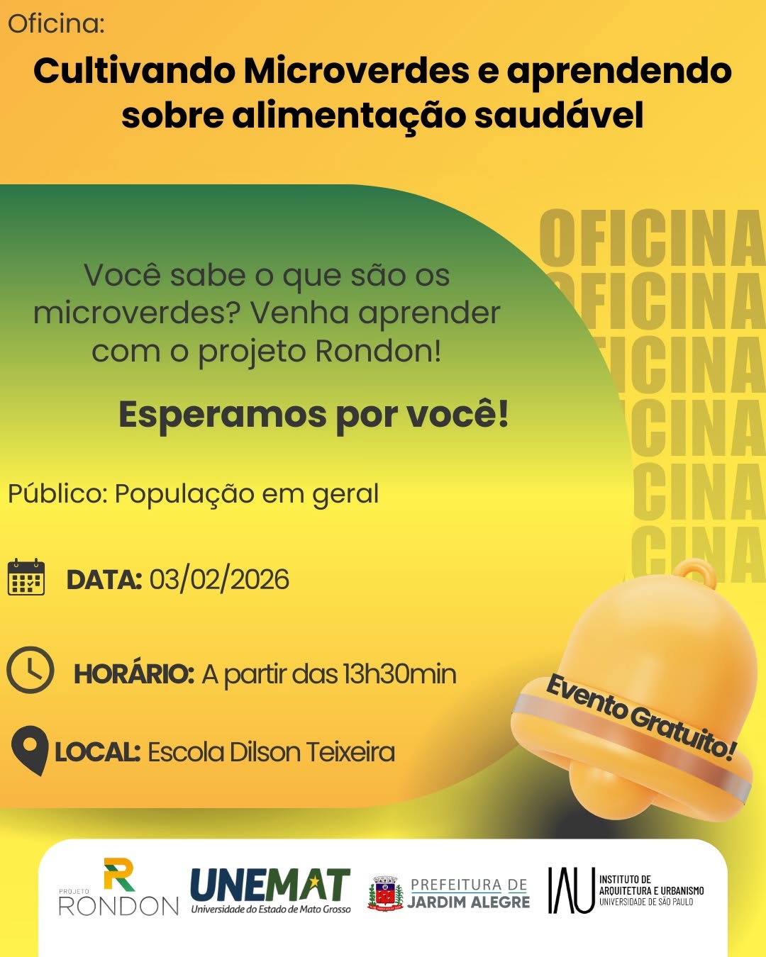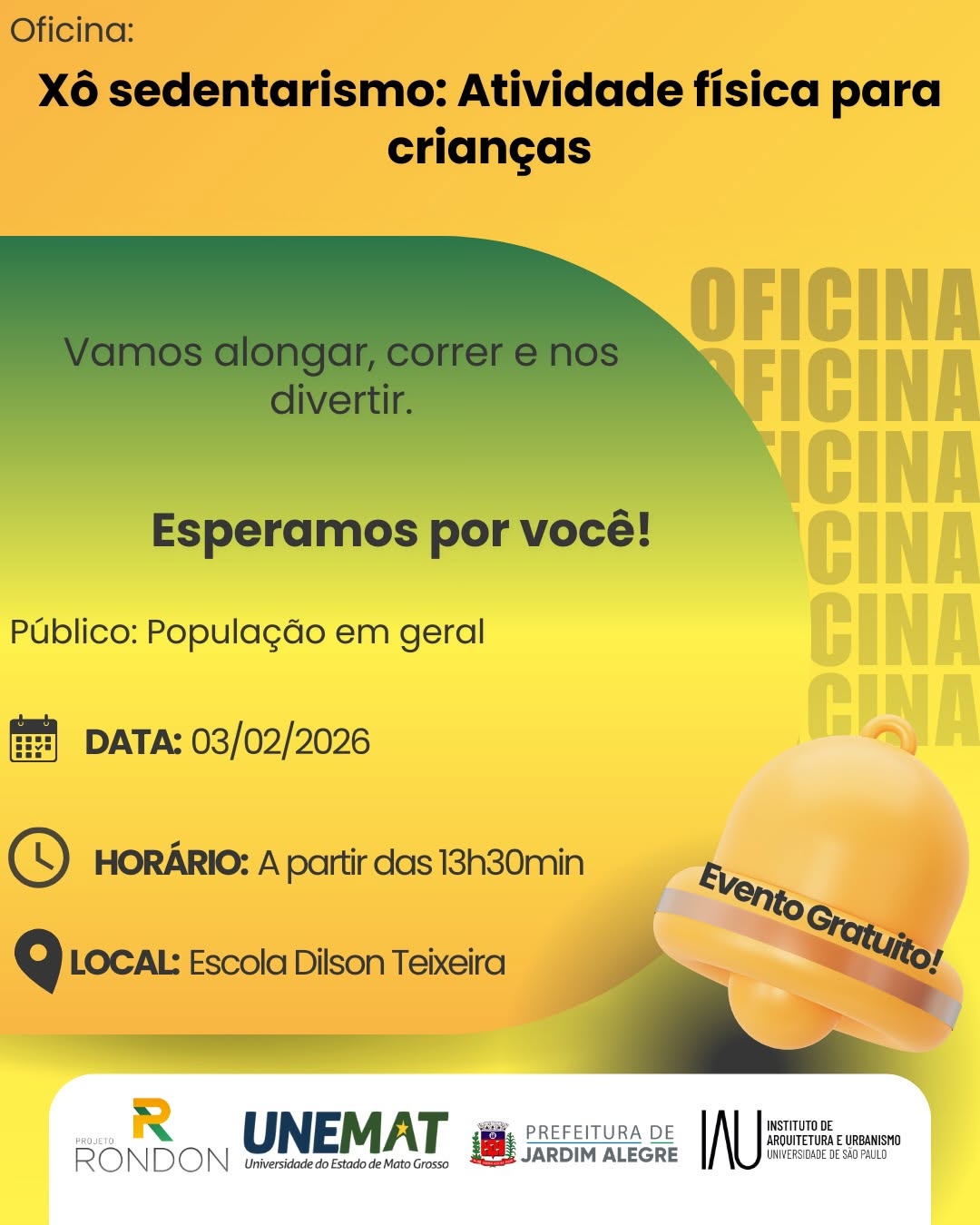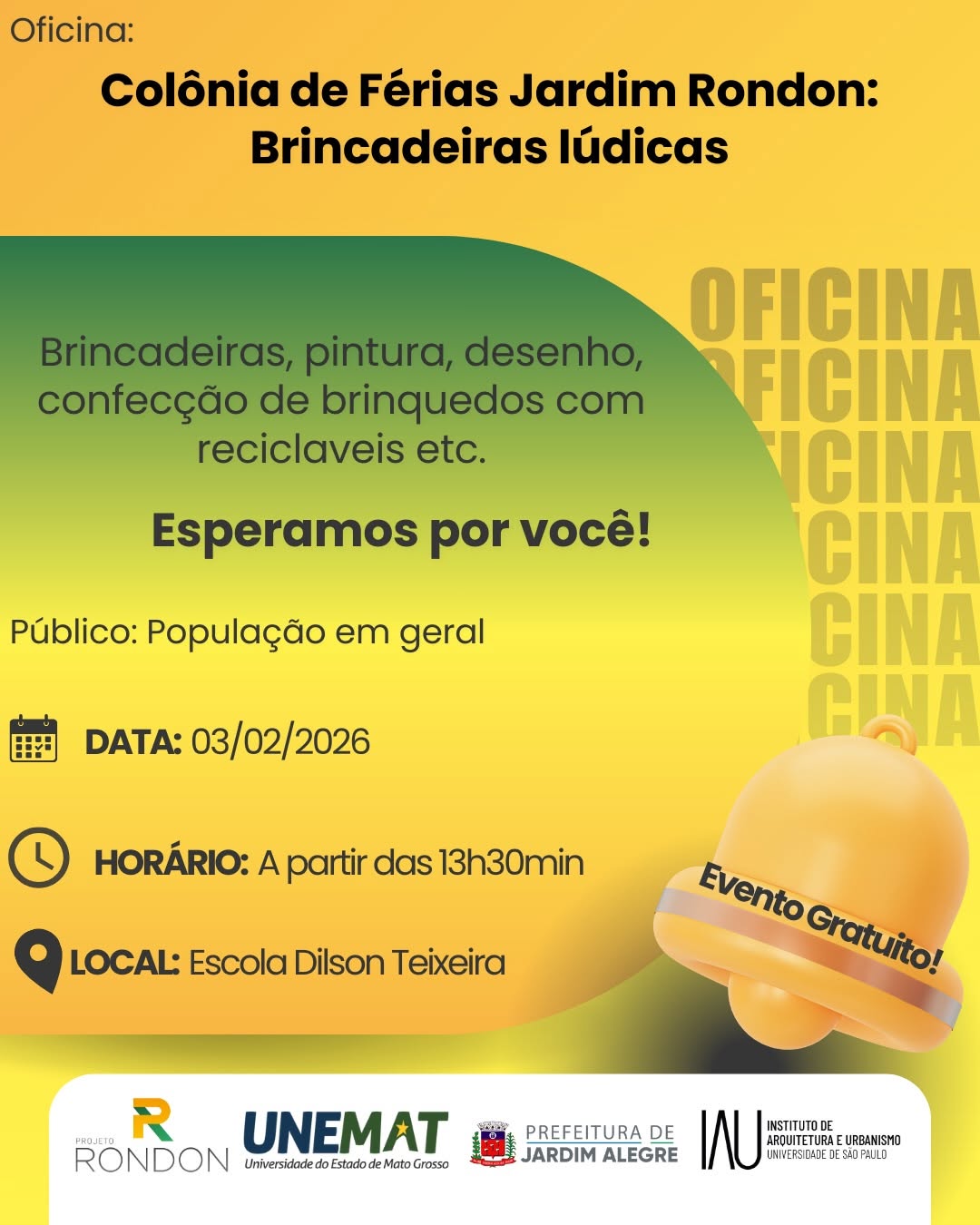 Confira as oficinas e horários que acontecem amanhã em Jardim Alegre, promovidas pelo Projeto Rondon, com atividades para educação, saúde, sustentabilidade e bem-estar da comunidade: