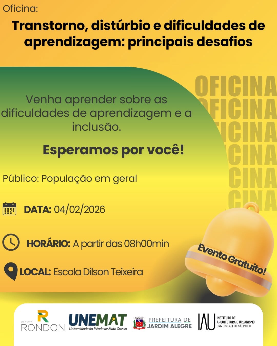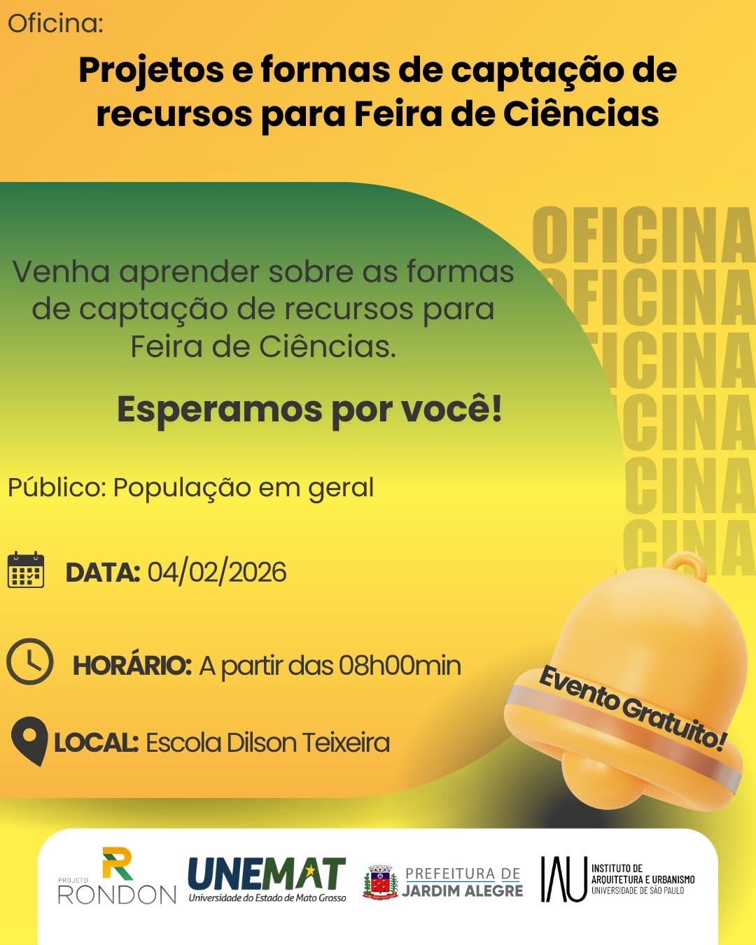 Após uma semana de intensa programação, o Projeto Rondon se despede de Jardim Alegre com as últimas oficinas nesta quarta-feira (04/02/2026), contemplando atividades nos três períodos do dia: